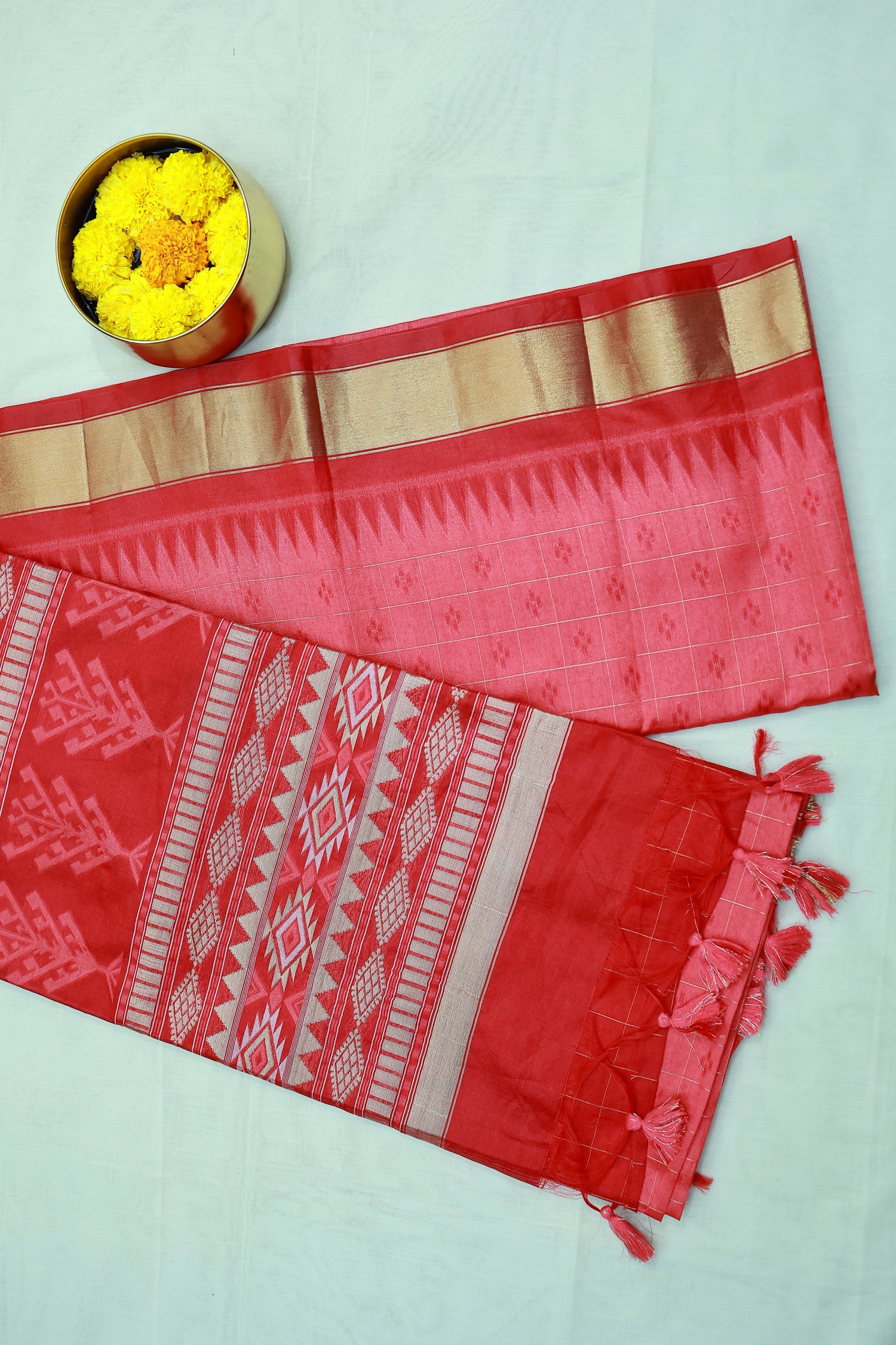 CAS186 - Magenta-pink and purple tone silk blended saree