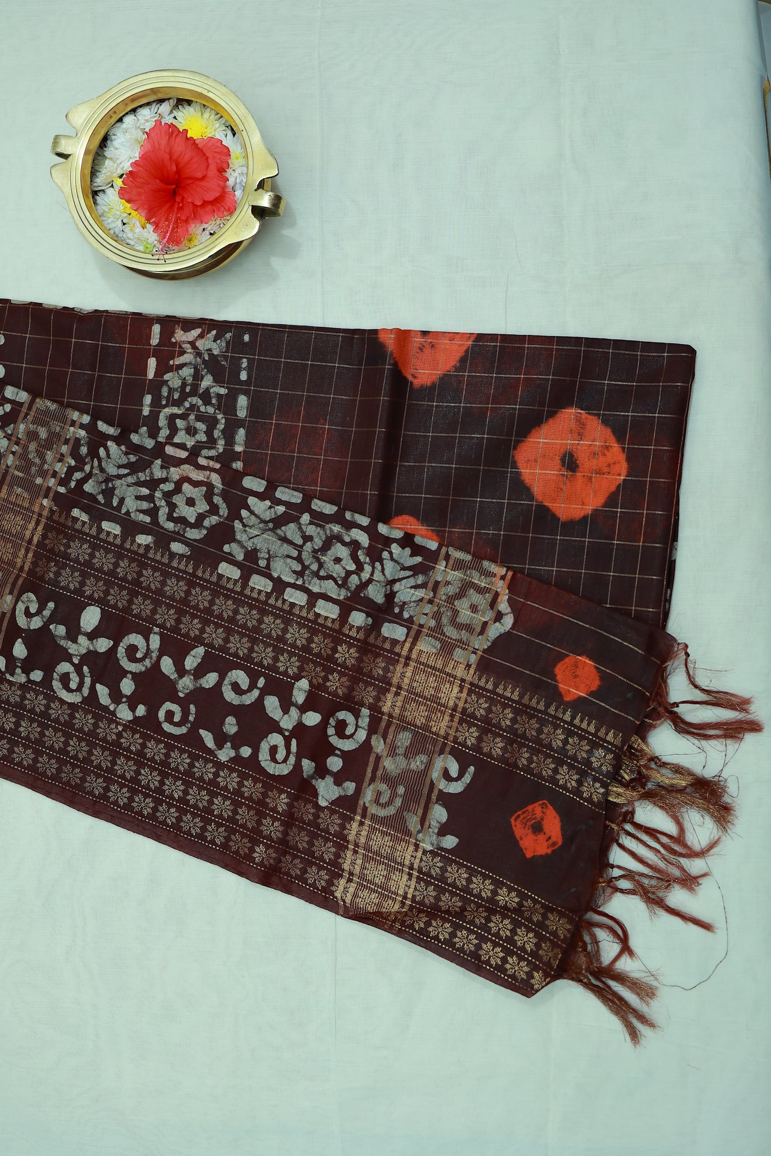 CAS202 - Olive Green and silver-grey Bandhani silk saree