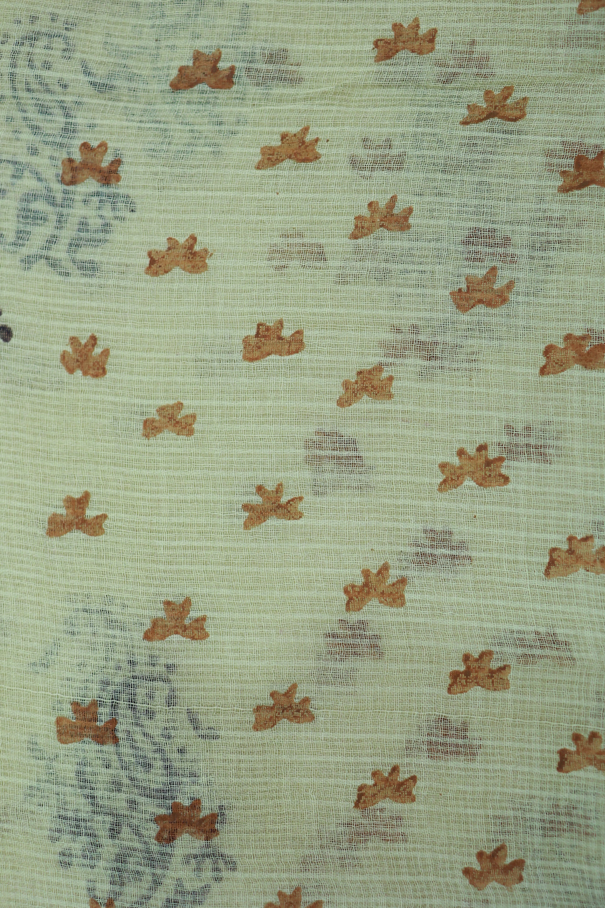 - Motifs: Warli tribal art on pallu, paisleys and tiny florals on body
